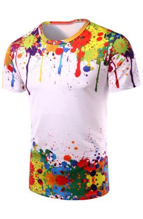 圆领3D多彩飞溅墨水打印短袖男士T恤